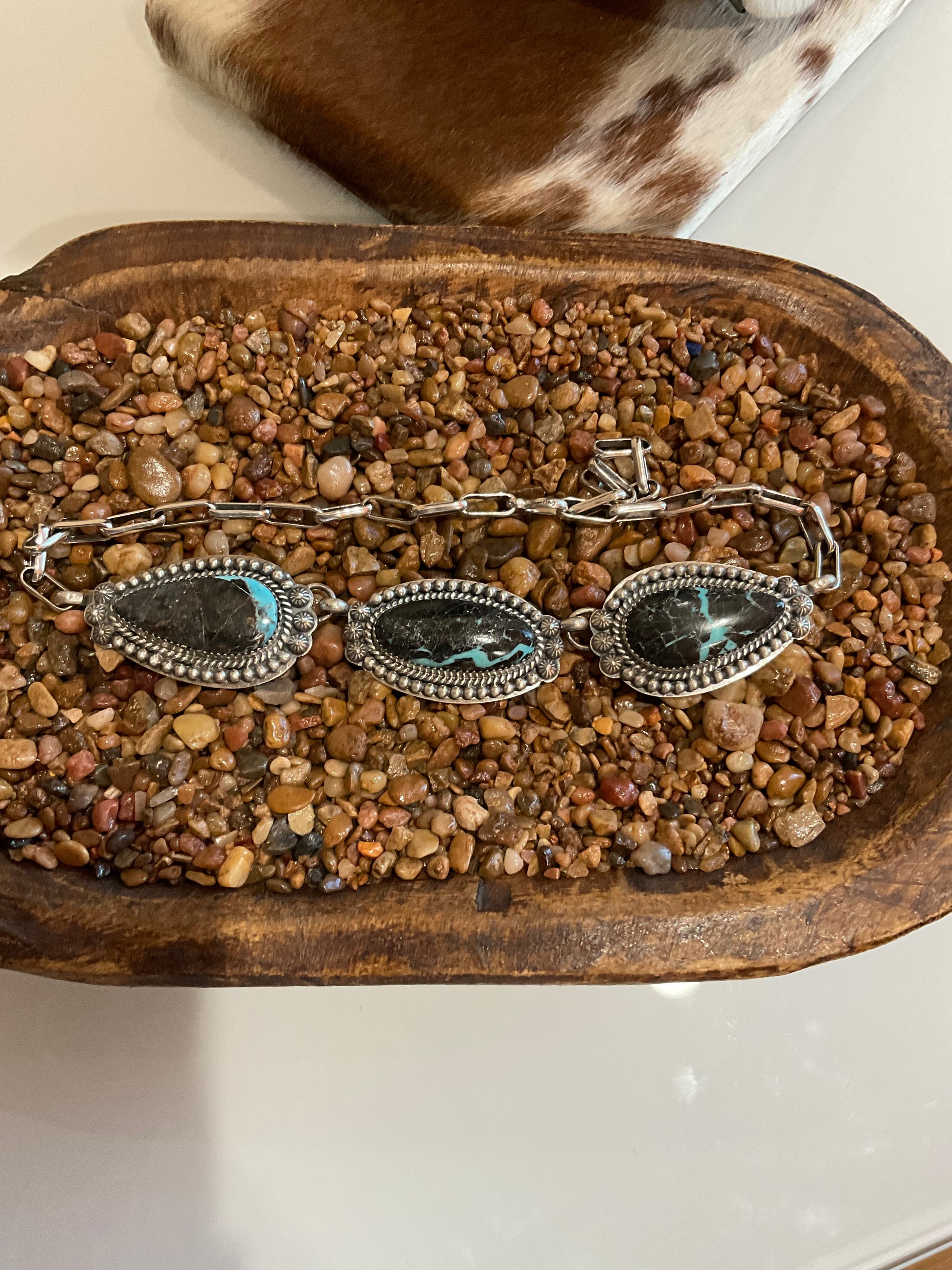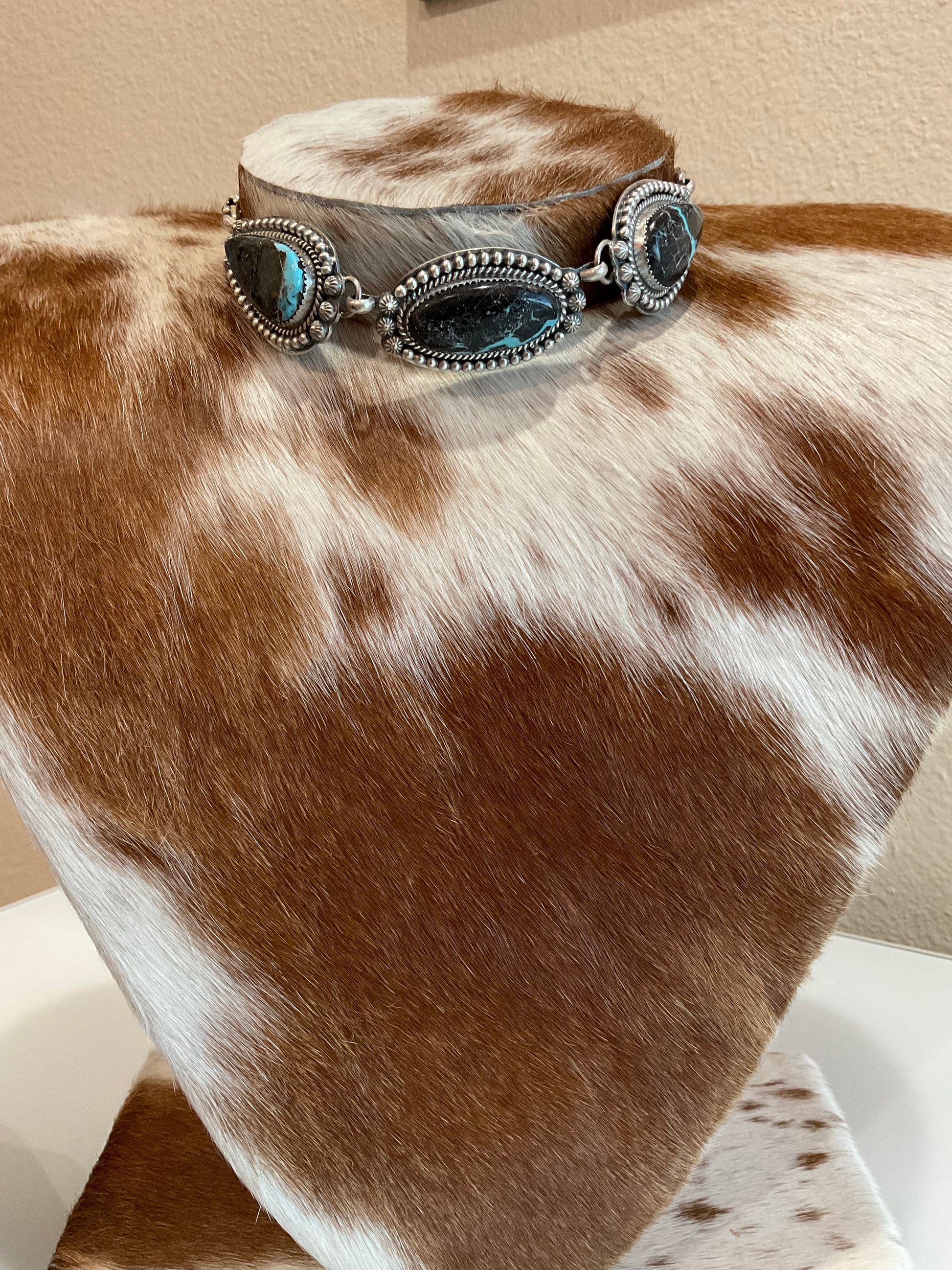Blackjack Choker 17” but can be worn shorter (each stone is 1.75”) Artist-Tim Vandever