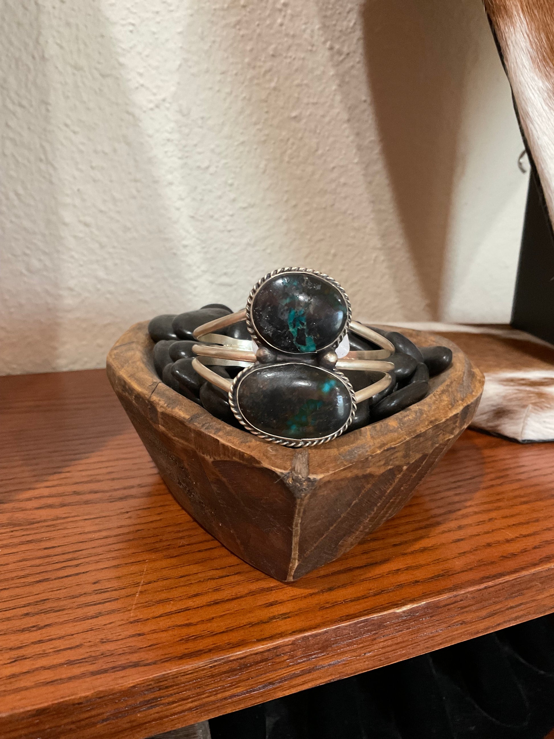Blue Moon Turquoise Bracelet 6.5” inch 1” gap (has flex) Artist-Donovan Nez