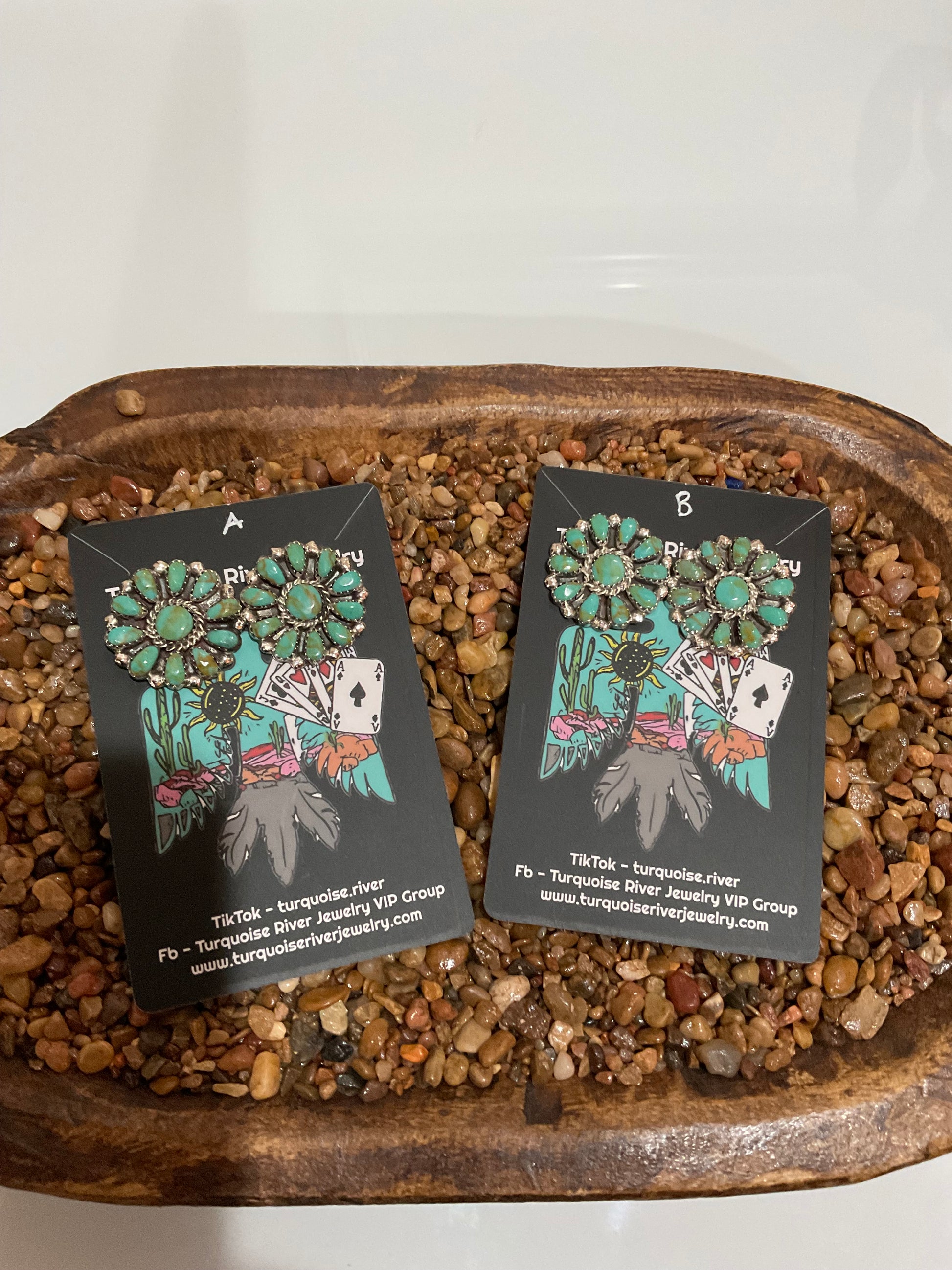 Kingman 4 Stone Square Stud Earrings .5” Post at Top Artist-Julia Etcitty (B)