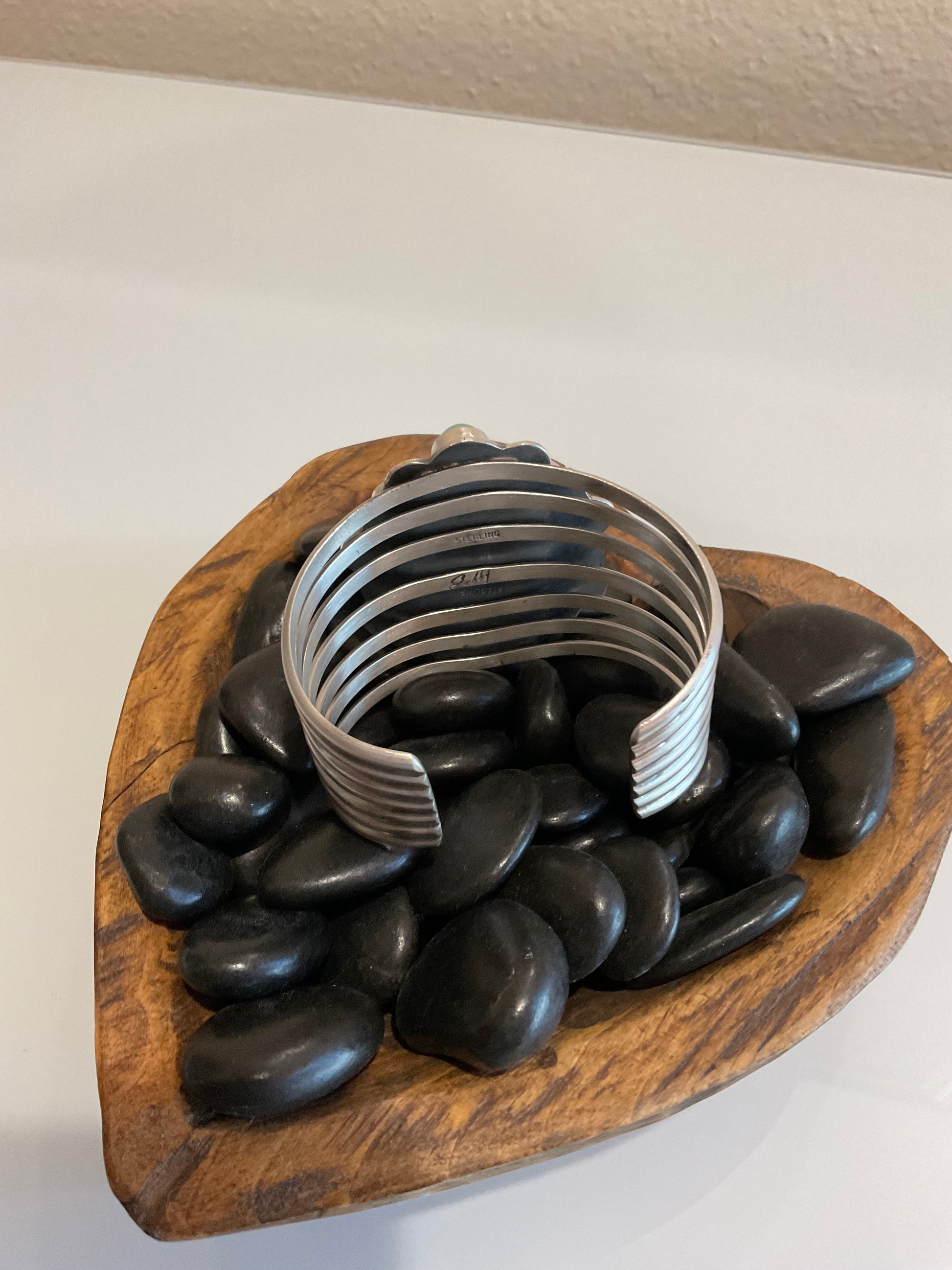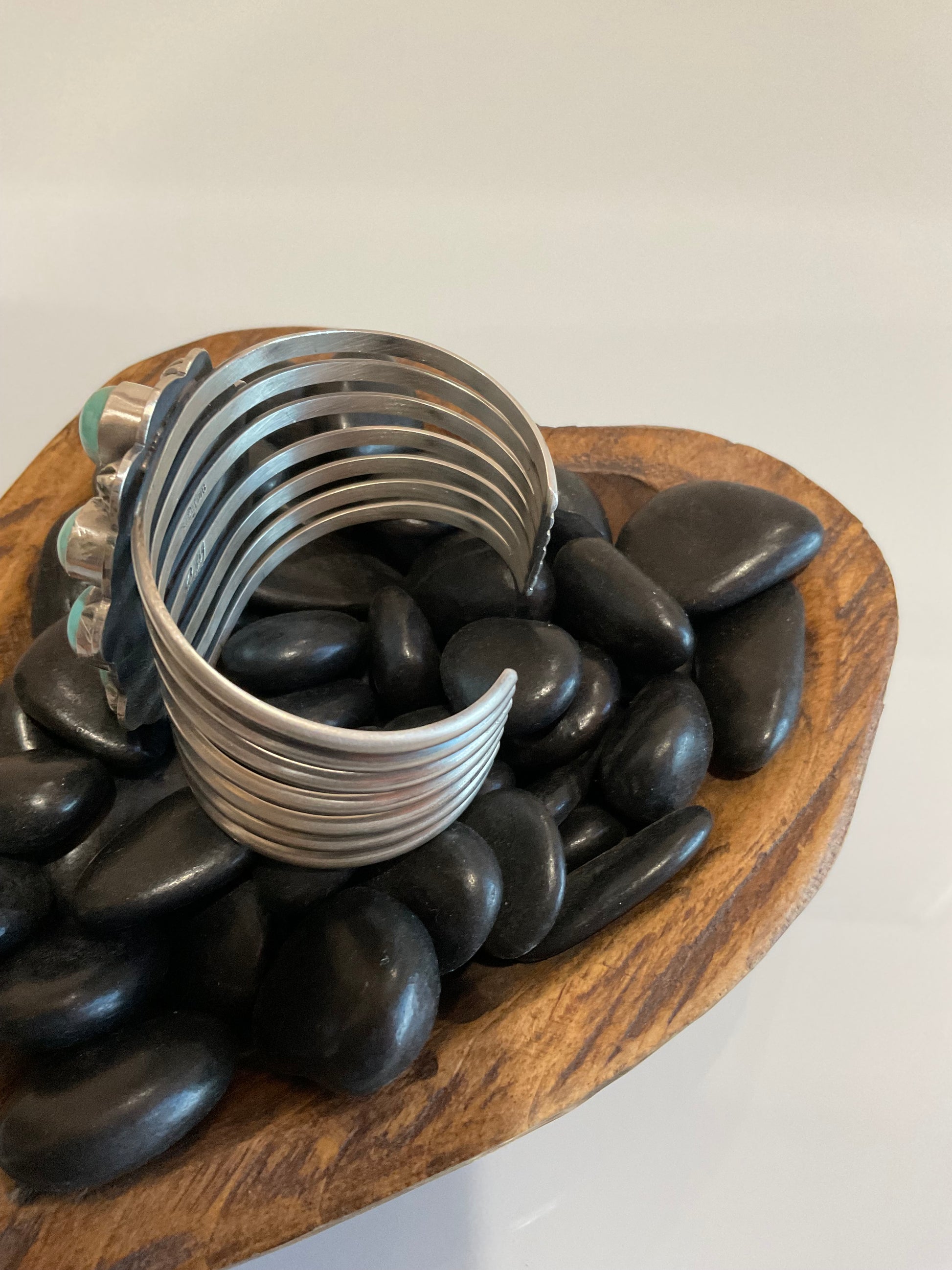 Dry Creek Turquoise Cluster Cuff 6.25” inc 1” gap w/slight flex Cluster is 1.75” x 2” Artist-Gabby Jurado