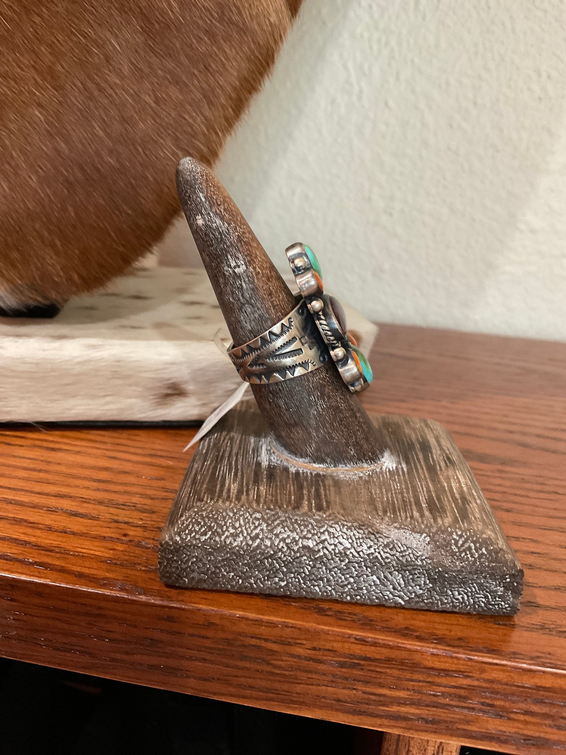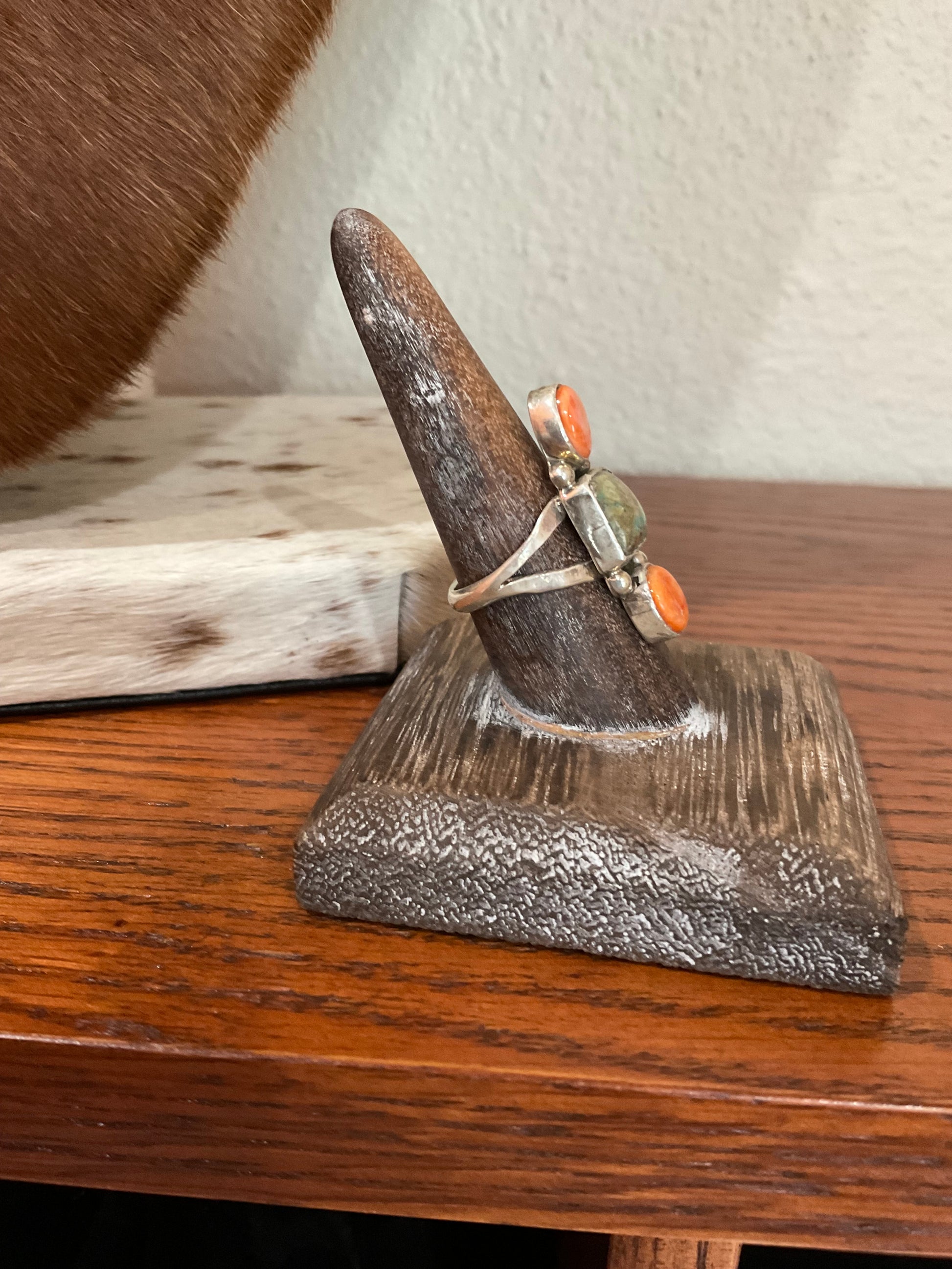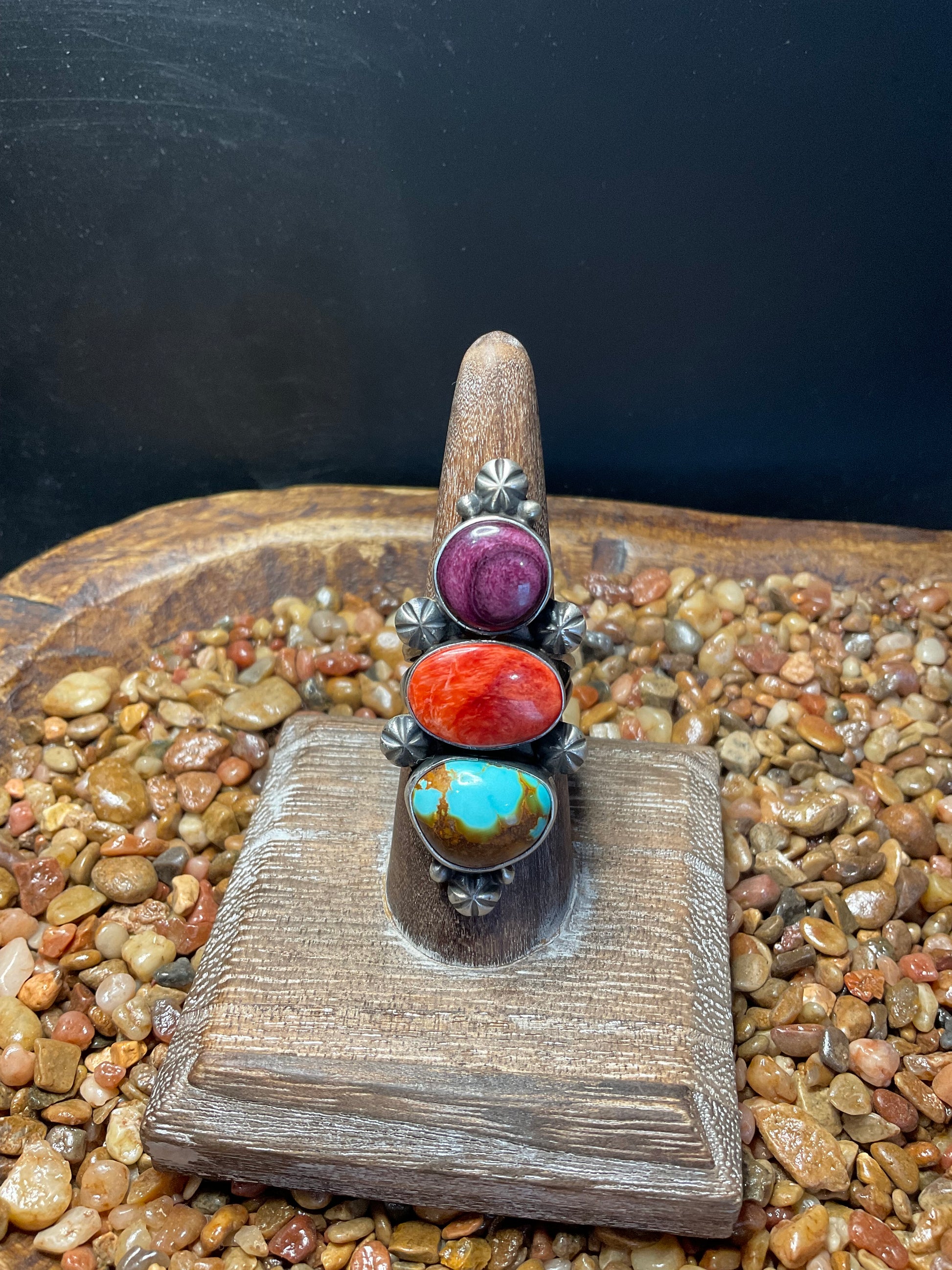 3 Stone Turquoise, Red & Purple Spiny Size 8 Artist-Antionette Largo